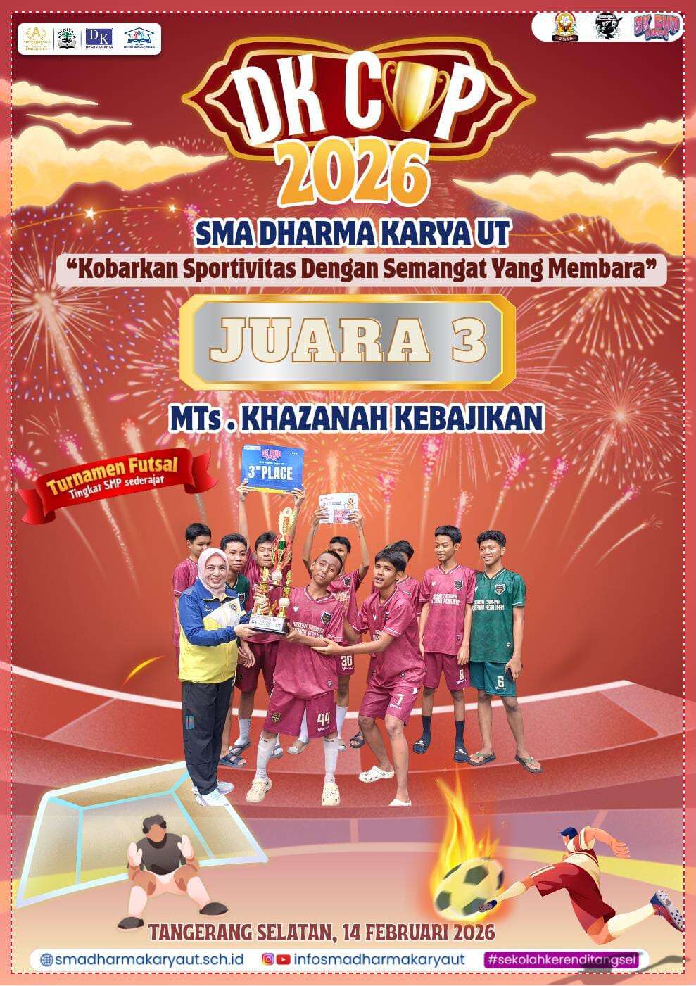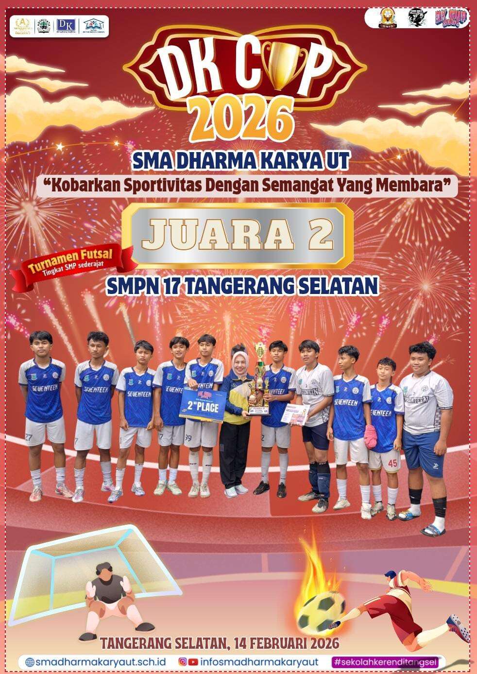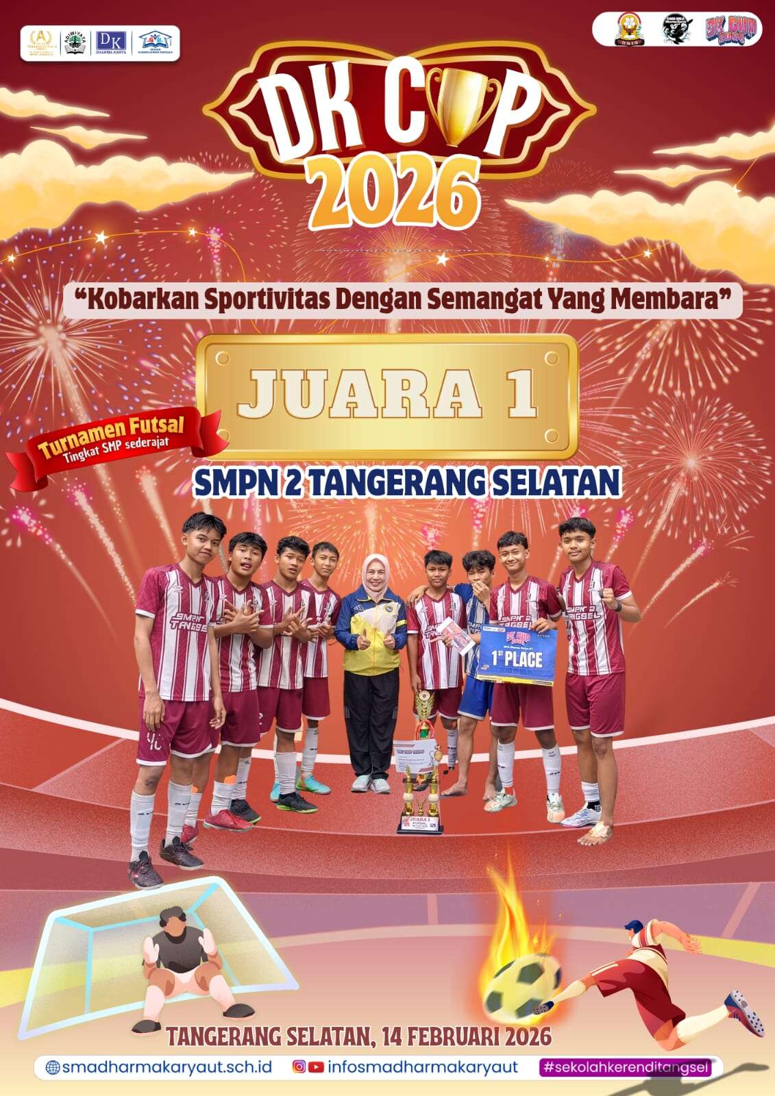 Tangerang Selatan - SMA Dharma Karya UT telah melaksanakan kegiatan DK CUP, Futsal antar siswa SMP/MTs di wilayah Kota Tangerang Selatan, kegiatan ini dilaksanakan pada hari Sabtu, 14 Februari 2026 di Lapangan sekolah SMA Dharma Karya UT.