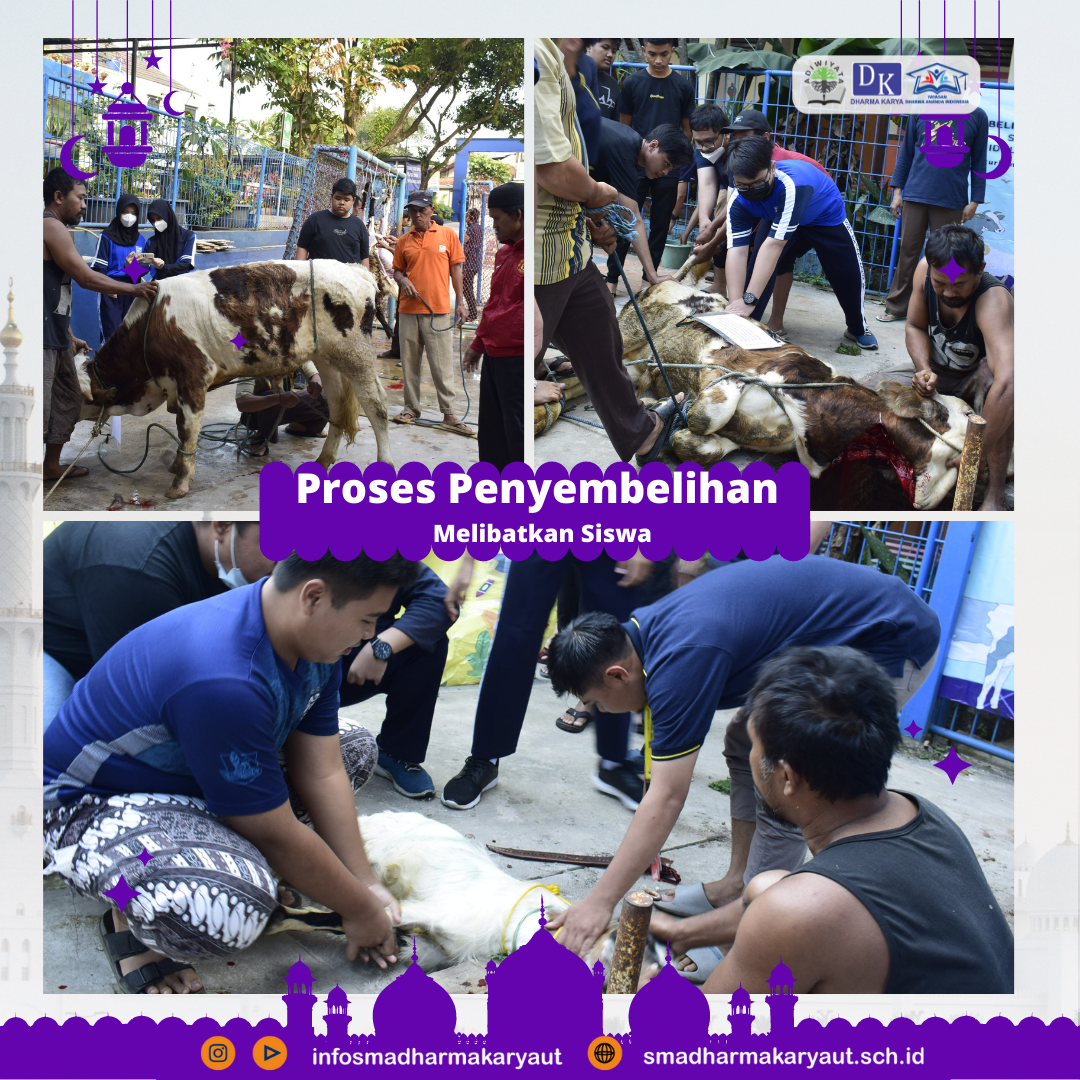 Kegiatan pemotongan hewan qurban yang dilaksanakan pada hari Senin, 11 Juli 2022 yang bertempat di SMA Dharma Karya UT tetap mengikuti protokol kesehatan yang berlaku, hewan kurban pun telah melewati tes kesehatan dan bebas dari penyakit kuku dan kulit.