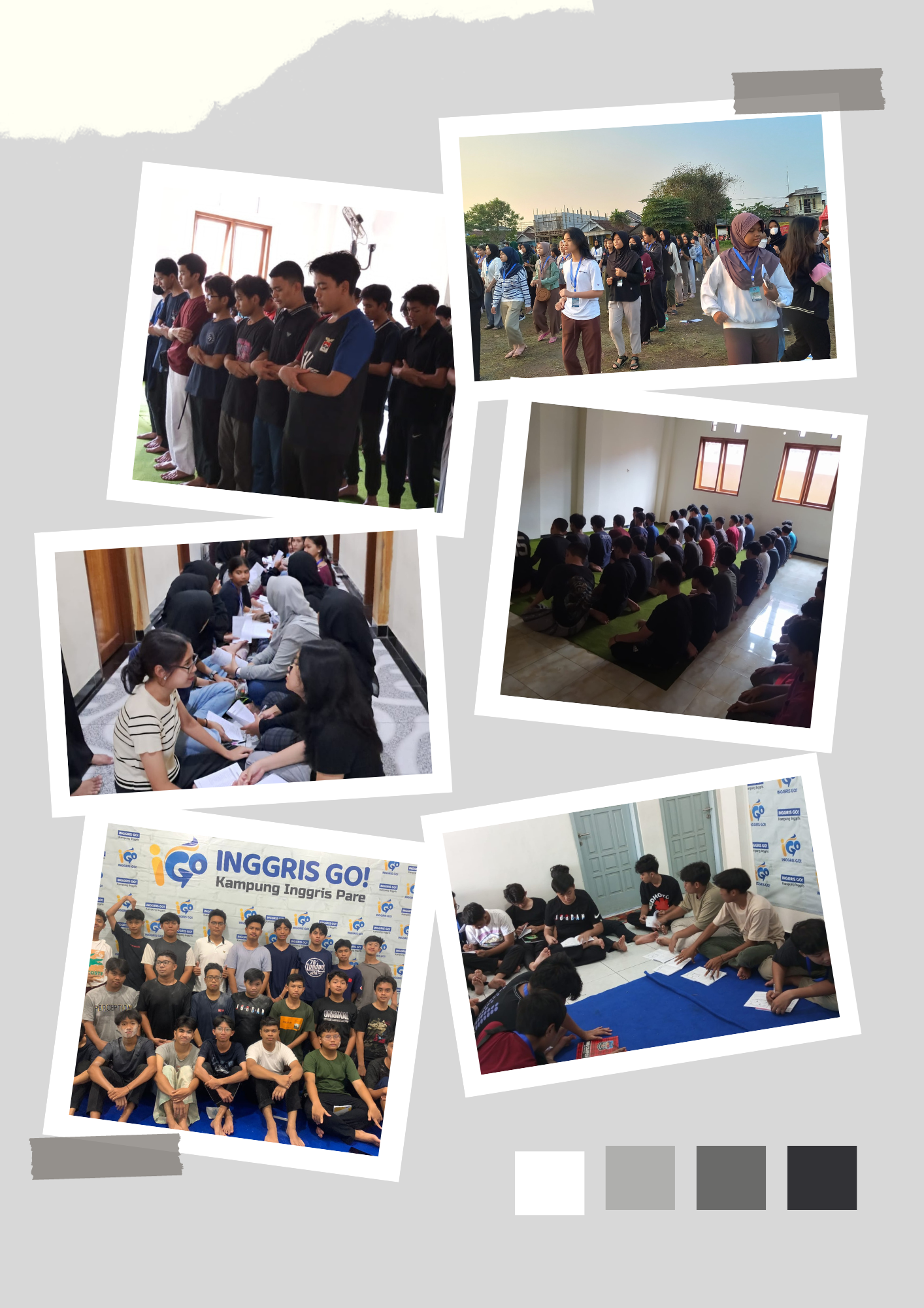 Selama proses belajar di Pare, Kediri siswa belajar intensif dari pagi sampai malam, dari jam 05.00 – 06.30 siswa melakukan pembiasaan morning class, kemudian dialnjutkan lagi belajar dari jam 07.00 – 20.30, selama 4 hari ini siswa belajar Bahasa inggris dengan metode yang praktis dan menarik dari Lembaga English Go, Pare, Kediri.